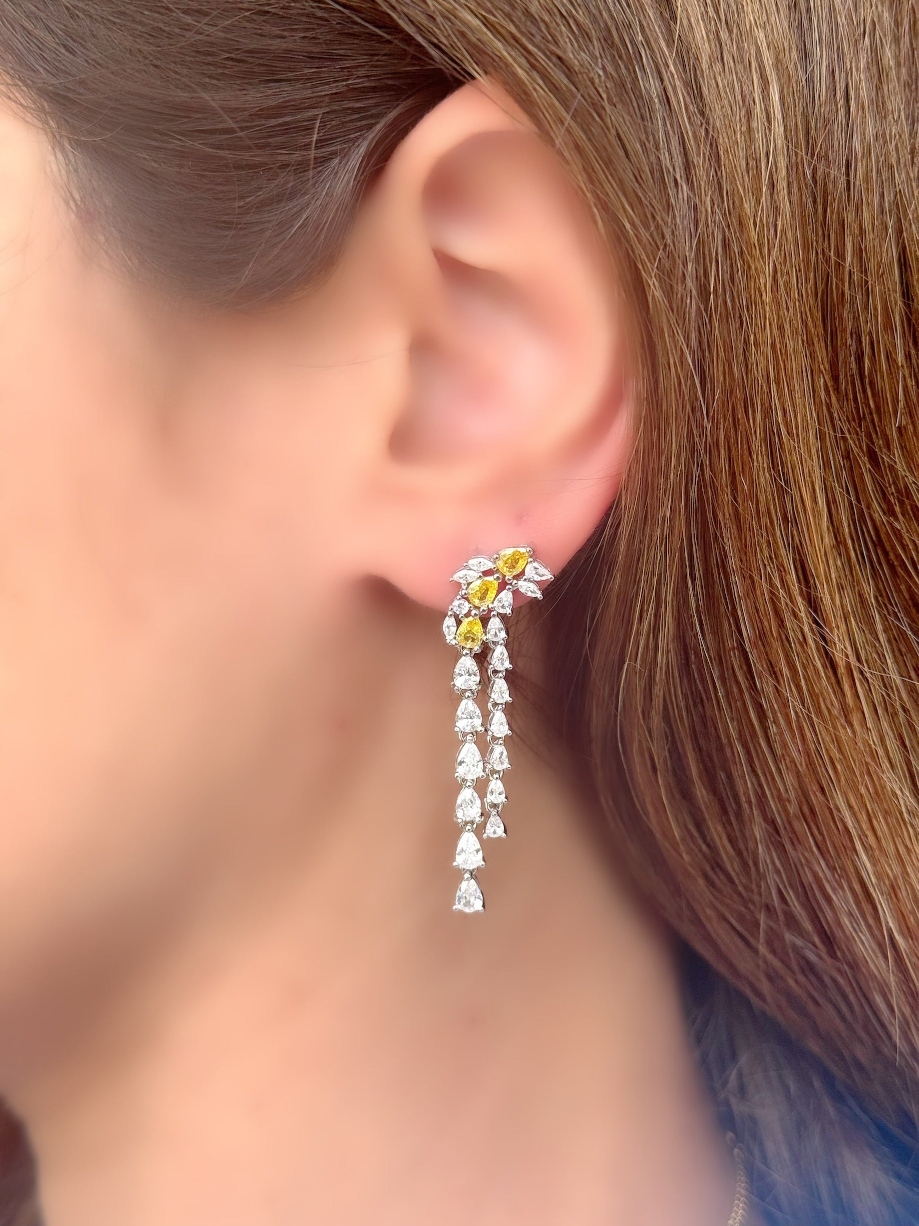 Silver 925 Drop Design Earrings White & Yellow Stones