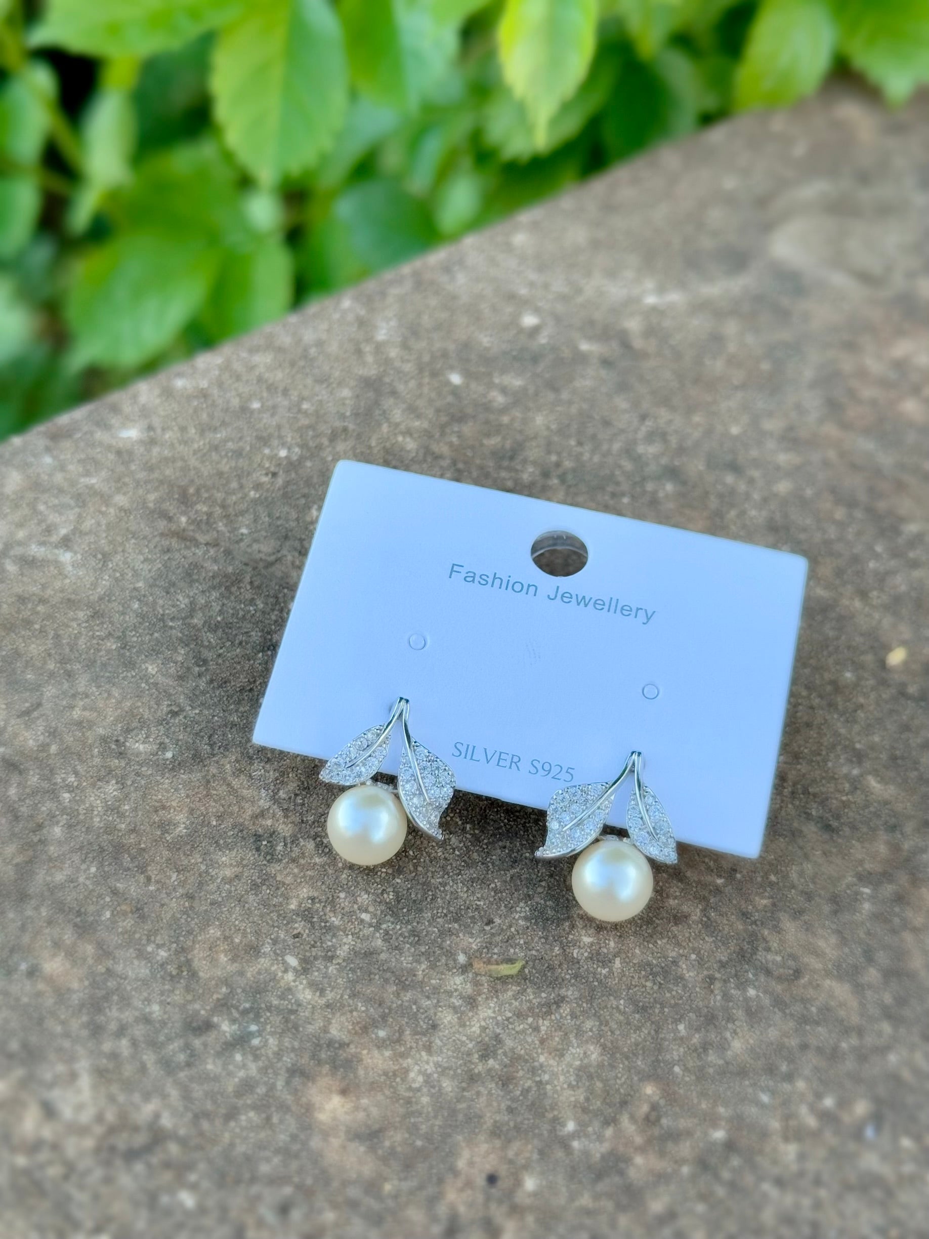 Silver 925 Leaf Design Earrings With Pearl