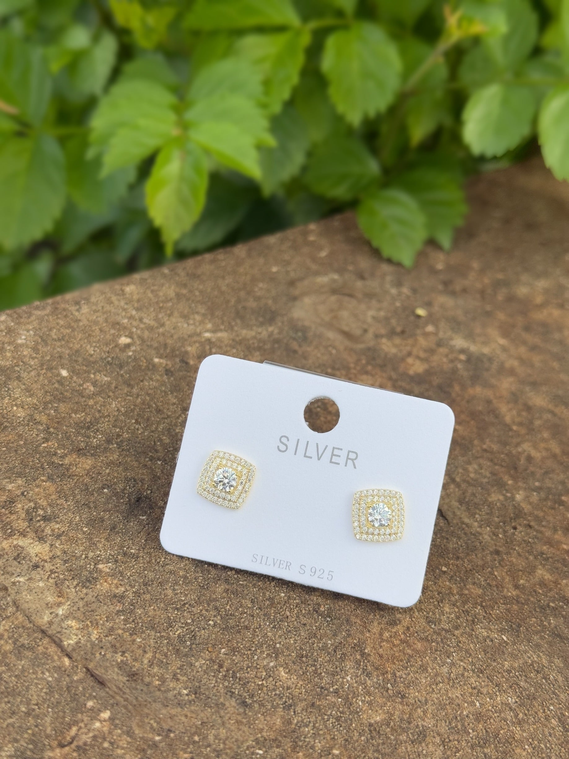 Silver 925 Gold Plated Elegant Cushion Cut Design Earrings