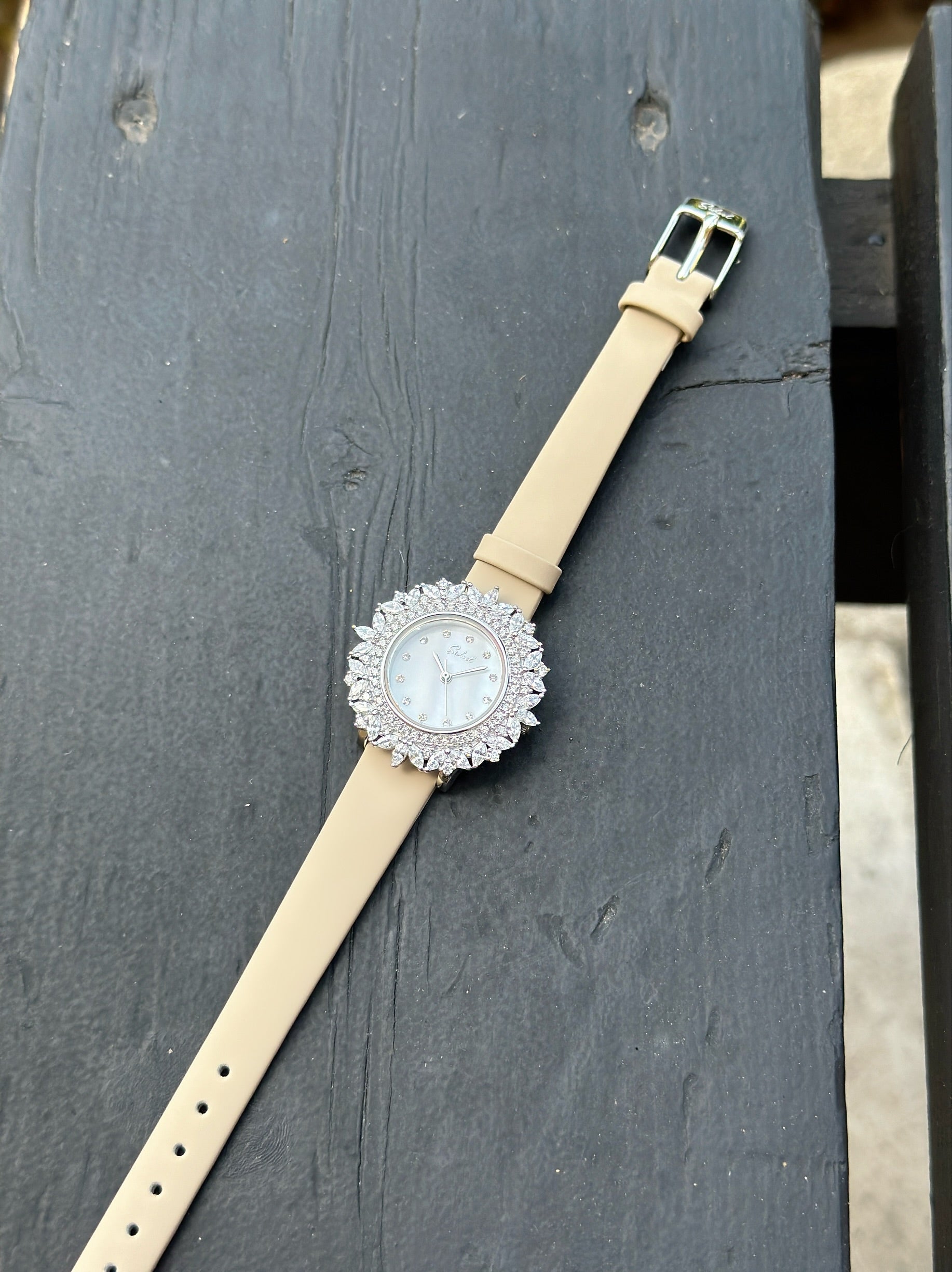 Silver 925 Silver 925 Round Shape Design Watch Beige Band Color