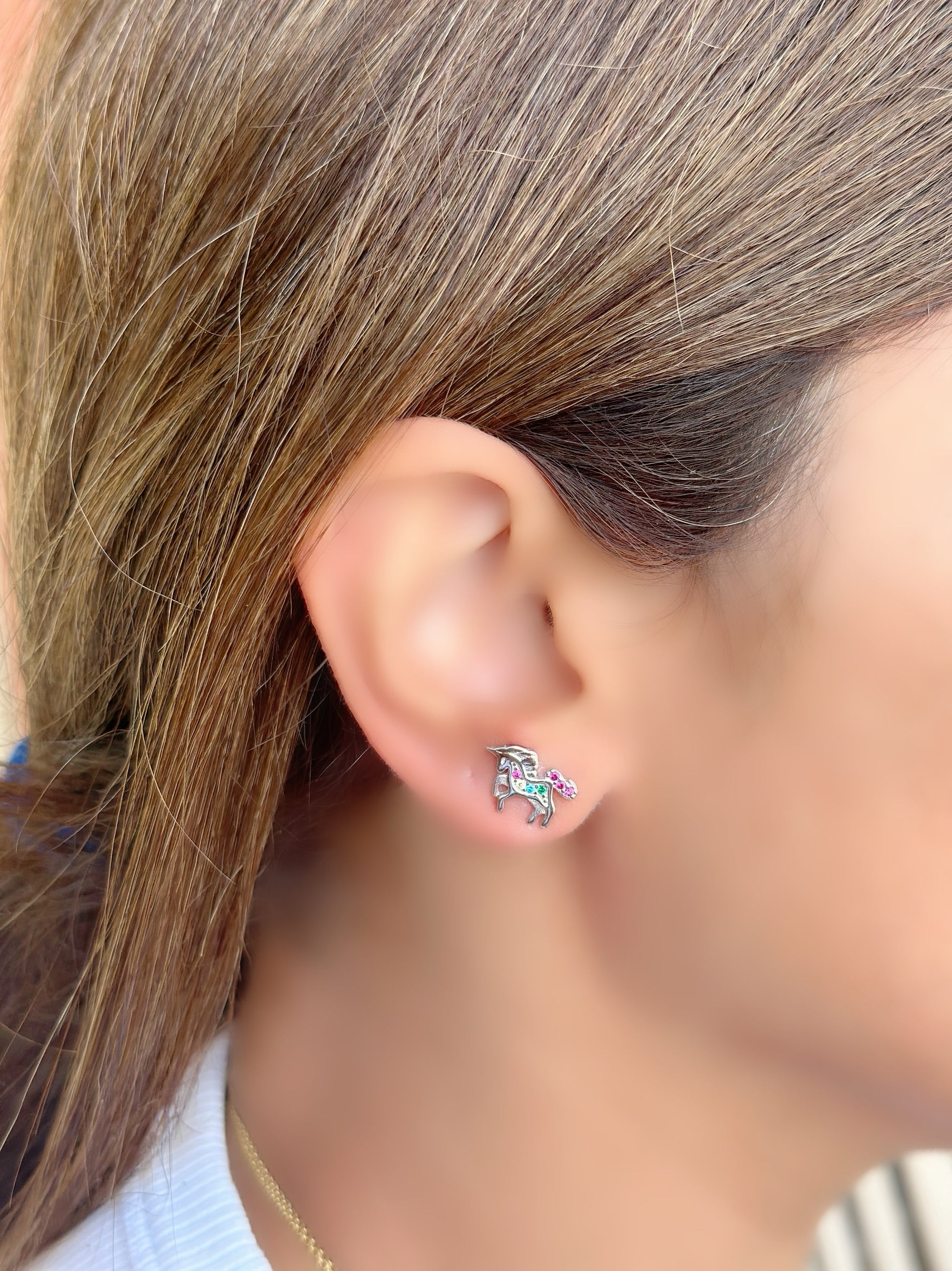 Silver 925 Unicorn Design Earrings With Coloured Stones